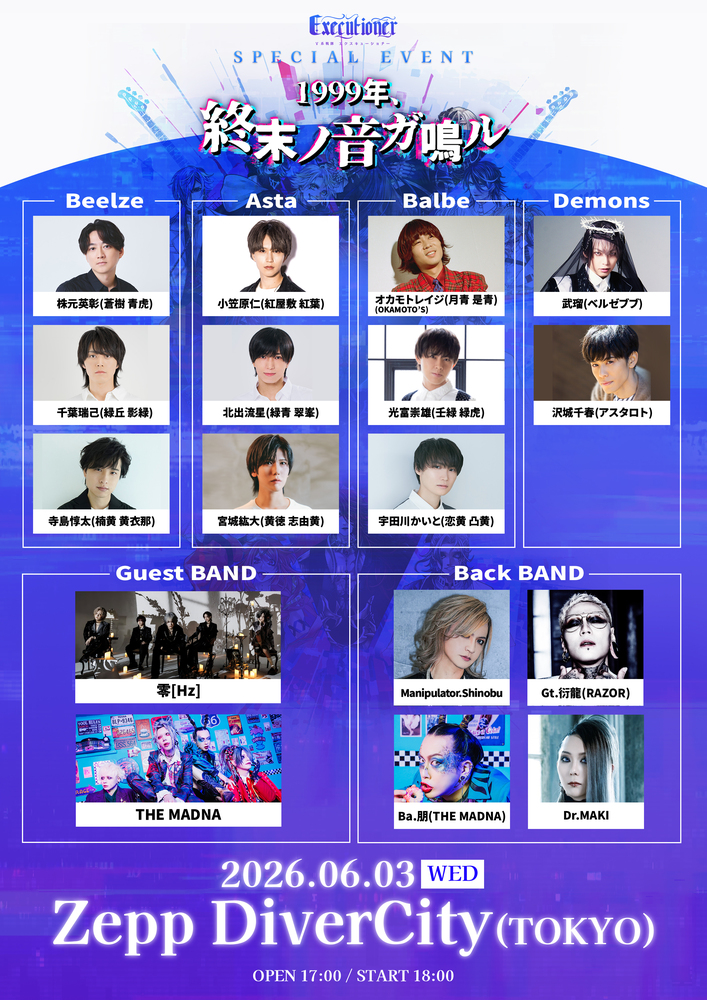 「V系戦隊エクスキューショナー SPECIAL EVENT 1999年、終末ノ音ガ鳴ル」出演決定!